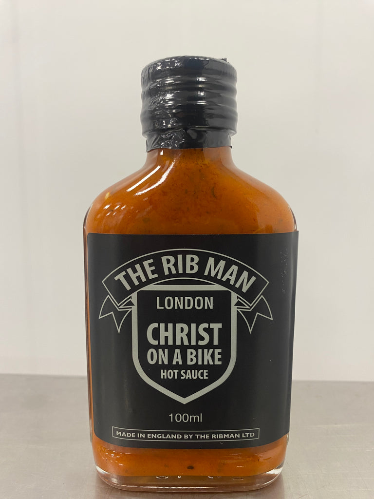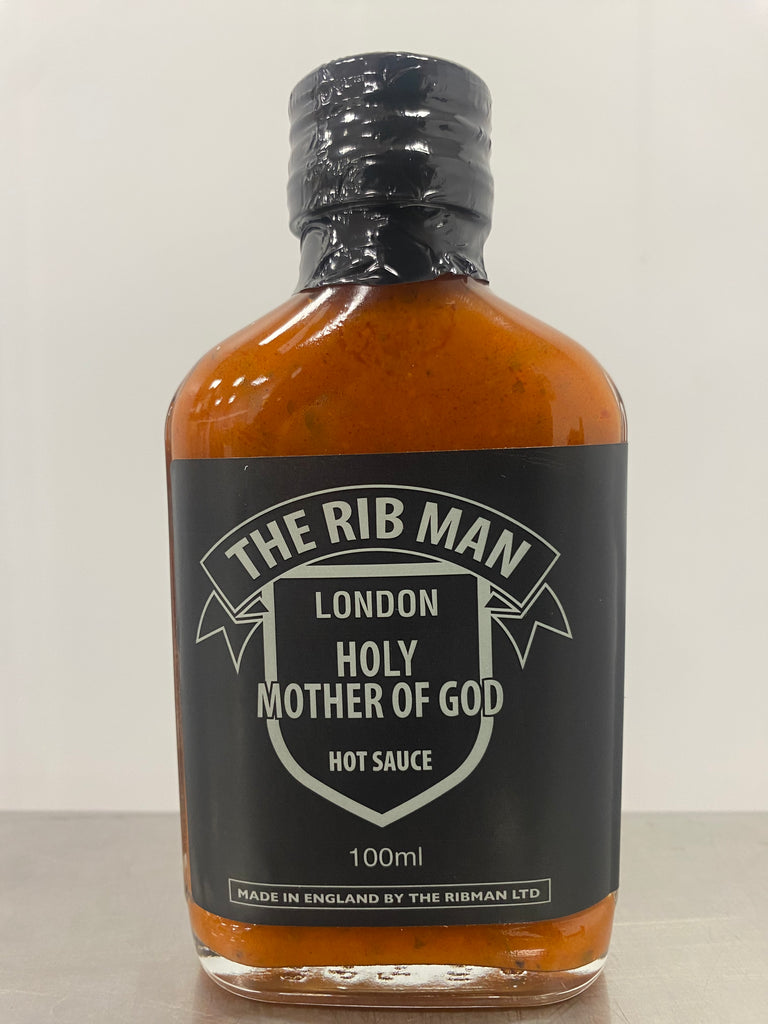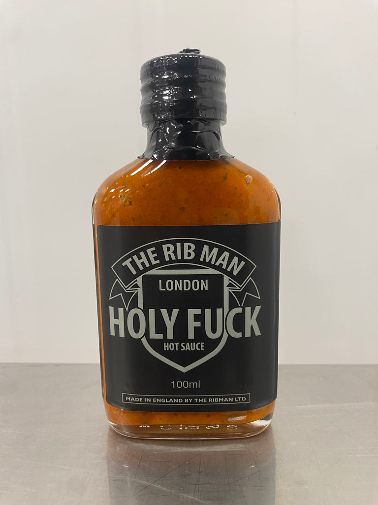 1 X 100ml The Ribman's famous HOLY FUCK Hot Sauce made with scotch bonnet peppers and naga jolokia chilis.